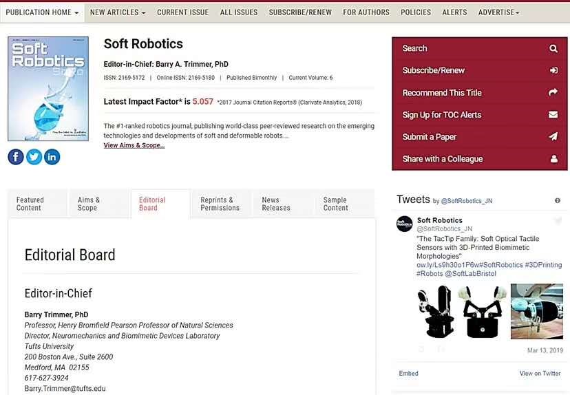 生物医学工程高精尖创新中心研究员担任机器人领域著名期刊Soft Robotics副主编