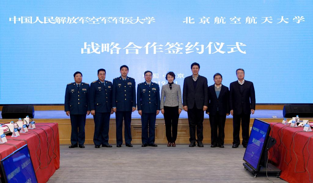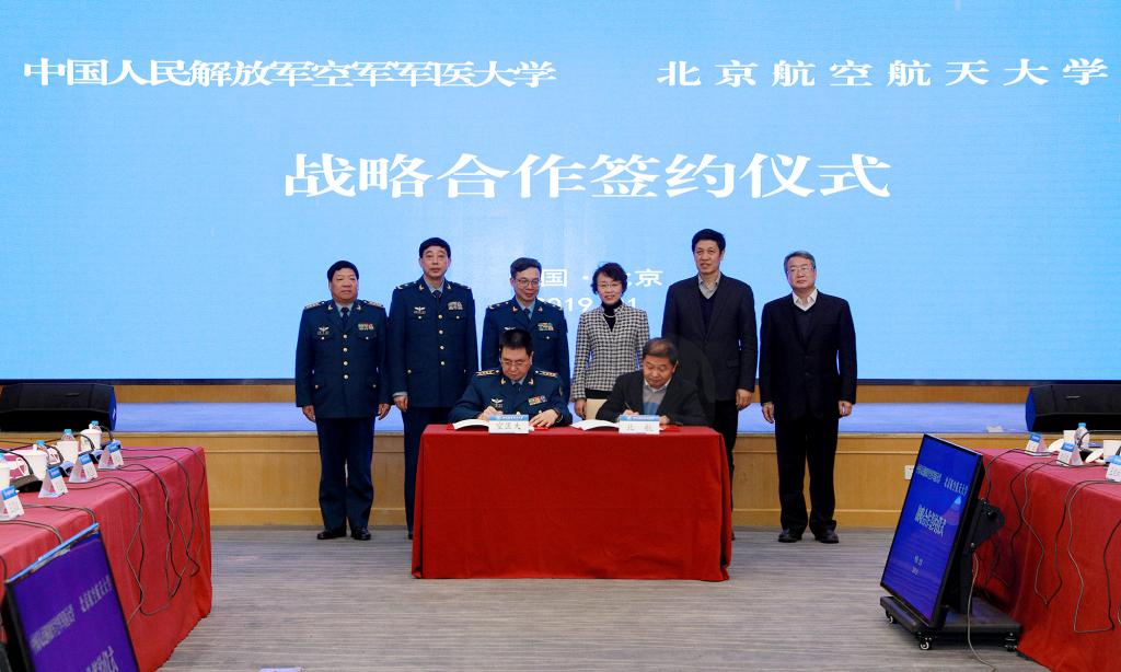 会上,苏景宽和房建成代表双方签署了战略合作协议,空军军医大学周先志、季志宏,北航曹淑敏、徐惠彬、黄海军见证签约。