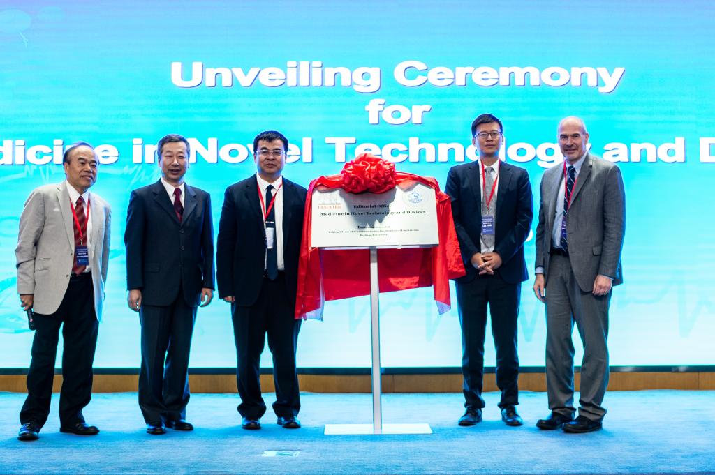 大会开幕式上,由樊瑜波教授、Scott Holister教授担任主编、郑诚功教授担任执行主编的新创刊的期刊杂志“Medicine in Novel Technology and Devices”举行了揭牌仪式。国际交流合作处处长李德玉、Elsevier代表Leo YING先生及期刊主编、执行主编共同为创刊杂志揭牌,并在大会期间召开了新创刊杂志第一届编委会会议。