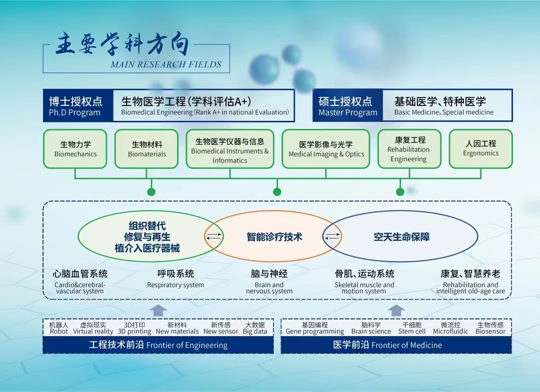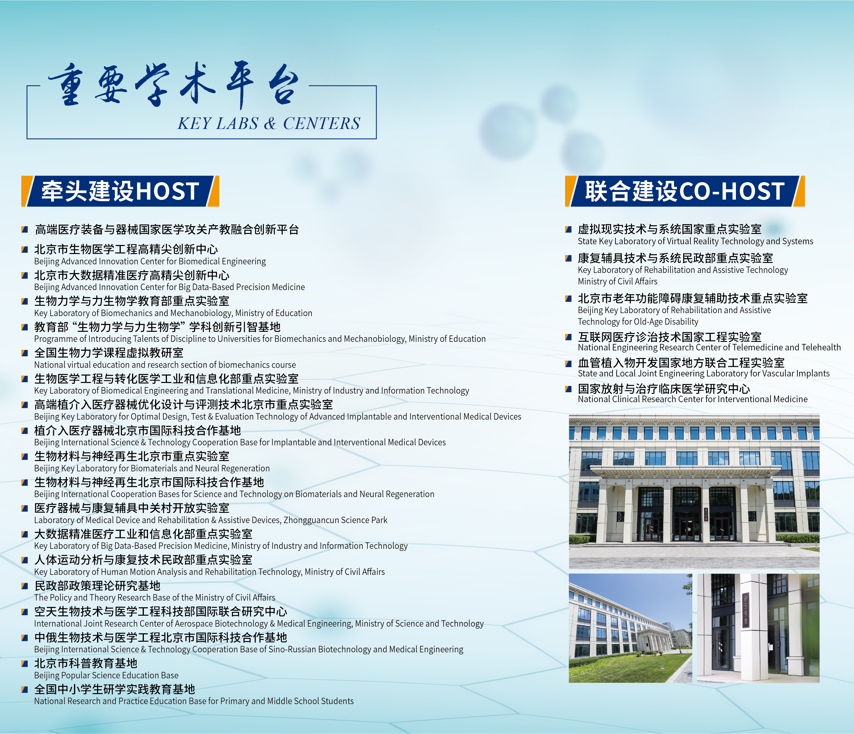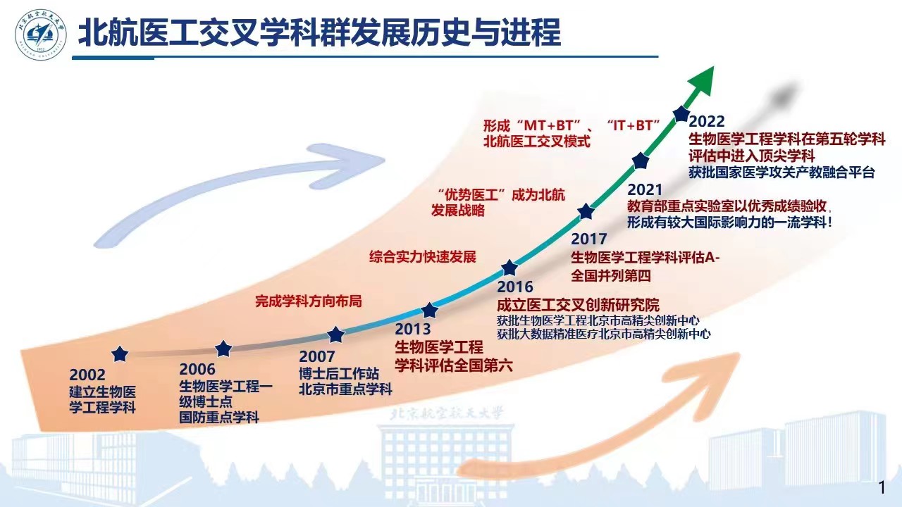 yl23411永利依托北航顶尖工科,笃行“医工交叉、两个面向(面向医疗装备与器械、面向航空航天生命保障)”的发展理念,以与人民健康密切相关的世界科技前沿和国家战略需求为导向,深度推进优势工科与生物医学交叉融合,形成了北航医工交叉融合的“MIBT”模式(MT+BT,IT+BT)。2022年“优势医工”建设取得了历史性、标志性突破,生物医学工程学科在第五轮学科评估中进入顶尖学科行列、获批创建高端医疗装备与器械国家医学攻关产教融合创新平台(医工结合方向)。通过高起点规划、高质量建设,经过二十年跨越式发展,北航医工已成为接轨国际、全国顶尖的医工交叉人才培养和科学研究基地,获得了国内外同行的高度认可。