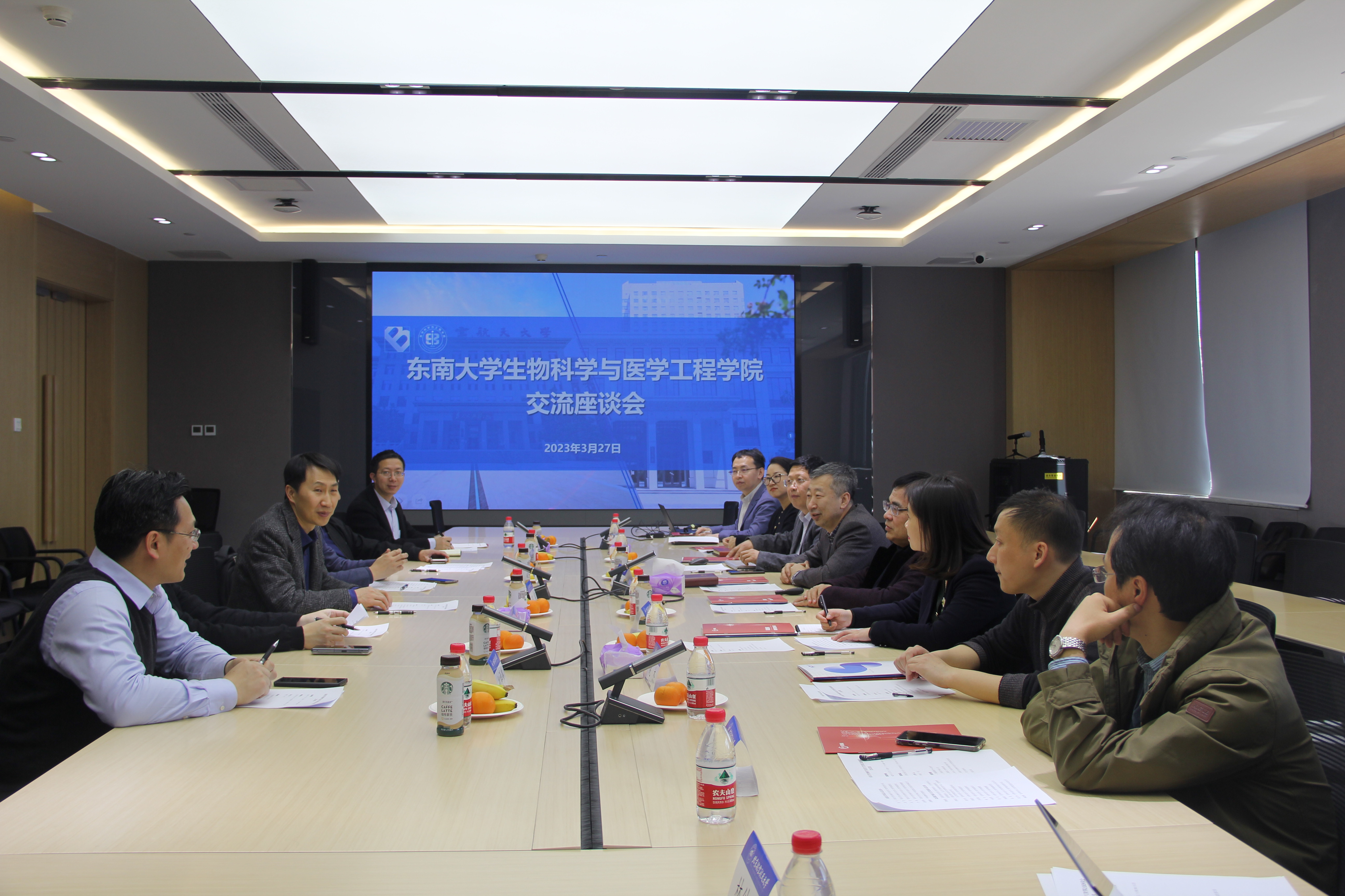2023年3月27日,东南大学生物科学与医学工程学院张宇书记一行来访yl23411永利,并围绕医工交叉学科建设、人才培养及平台建设进行调研和交流。学科群负责人樊瑜波、党委书记李德玉,生物与医学工程学院副院长郑丽沙、孙安强、姚杰,党委副书记侯丹丹以及相关主干课程负责教授参与交流。