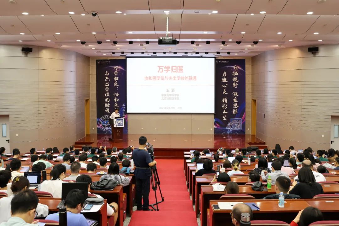 开班式结束后,王辰做客“北航大讲堂”,为我校近300名师生带来一场题为“万学归医,协和医学院与杰出学校的融通”的讲座。讲座中,王辰围绕“健康与生命是人的终极利益”这一核心主题,深入浅出地阐释了“健康”和“医学”的概念,指出医学是一个独特的、综合的、巨大的体系,并结合北航“协和医班”的实践,鼓励同学们共同投身医学这一神圣事业。